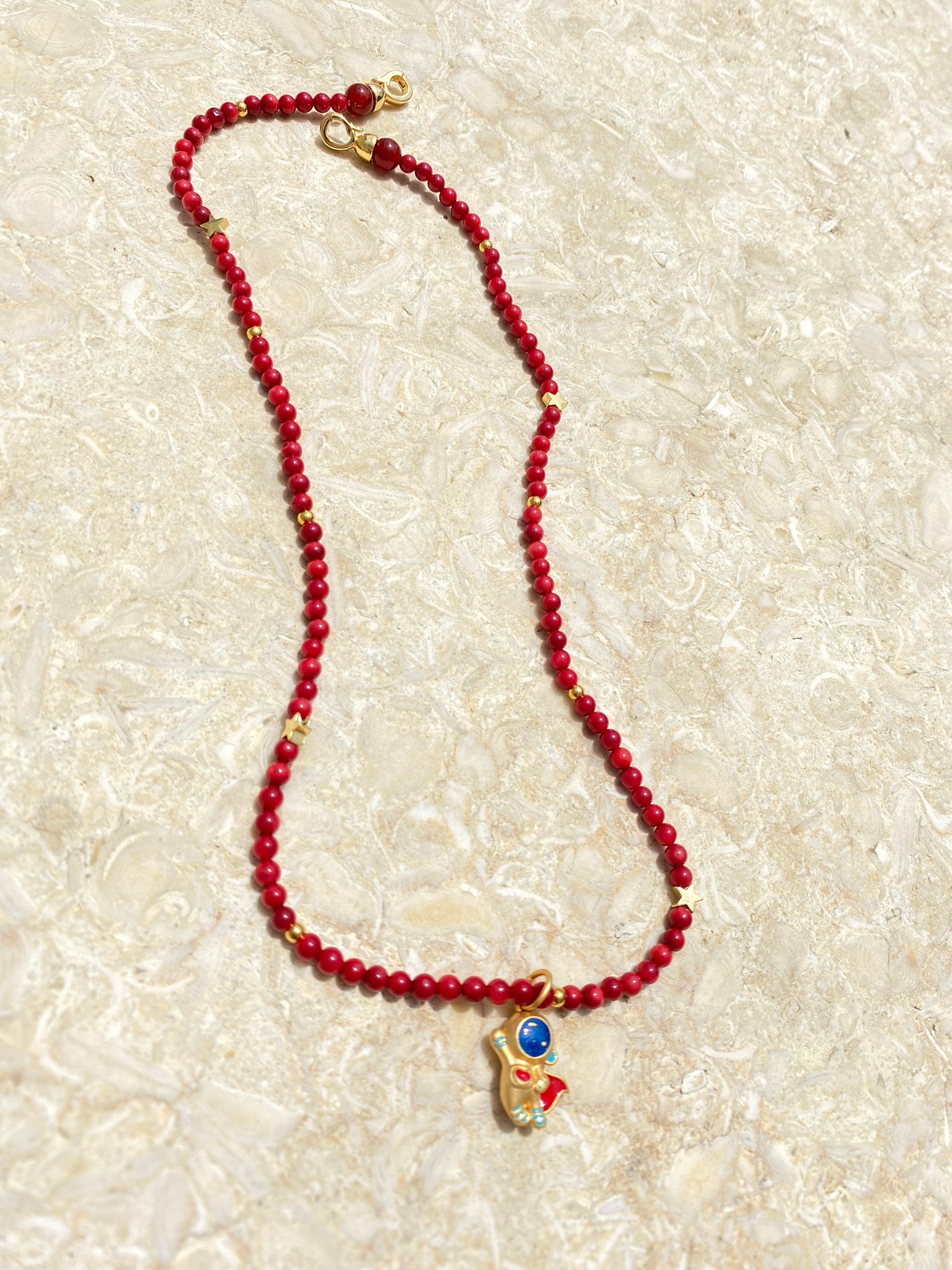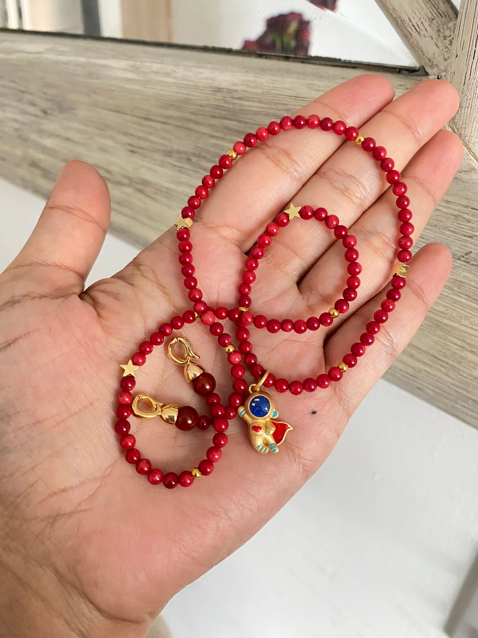Choker elaborado con mineral coral: conocido por sus propiedades protectoras, energizantes; que promueve sensación de equilibrio y restaura la paz interior.